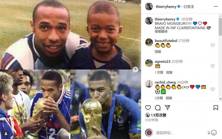 亨利社媒晒与姆巴佩昔日合照:干得好小伙子,克莱枫丹制造